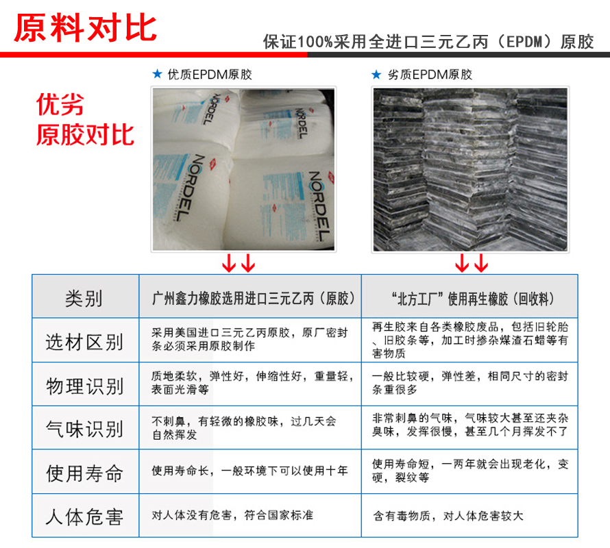 產(chǎn)品材料 : 美國DOW、德國LANXESS等進口EPDM橡膠